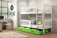 Juniorská poschodová posteľ KUBUŚ 90X190 s matracom a zásuvkou, biela/zelená