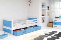 Jednolôžková posteľ pre mladých RICO 90X200 so zásuvkou, biela/modrá