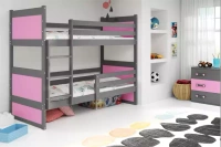 Poschodová posteľ pre mladých RICO 90X190 s matracom, grafitová/ružová