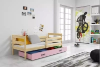 ERYK jednolôžková posteľ pre dospievajúcich 90x190 so zásuvkou, borovicová/ružová