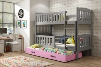 Trojmiestna posteľ pre mladých KUBUŚ 90X200 s matracom a zásuvkou, grafitová/ružová