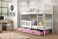 Juniorská poschodová posteľ KUBUŚ 90X200 s matracom a zásuvkou, biela/ružová