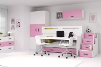 MAX 1 80X200 trojlôžková posteľ pre mladých s matracom a stolom, ružová
