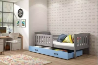 KUBUŚ 90X190 jednolôžková posteľ pre mladých so zásuvkou, grafit/modrá