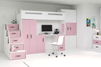 MAX 1 80X200 trojlôžková posteľ pre mladých s písacím stolom, ružová