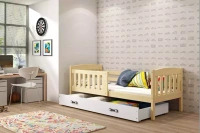 KUBUŚ 90X190 jednolôžková posteľ pre mladých s matracom a zásuvkou, borovica/biela