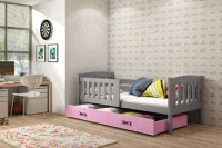 KUBUŚ 90X200 jednolôžková posteľ pre mladých s matracom a zásuvkou, grafitová/ružová