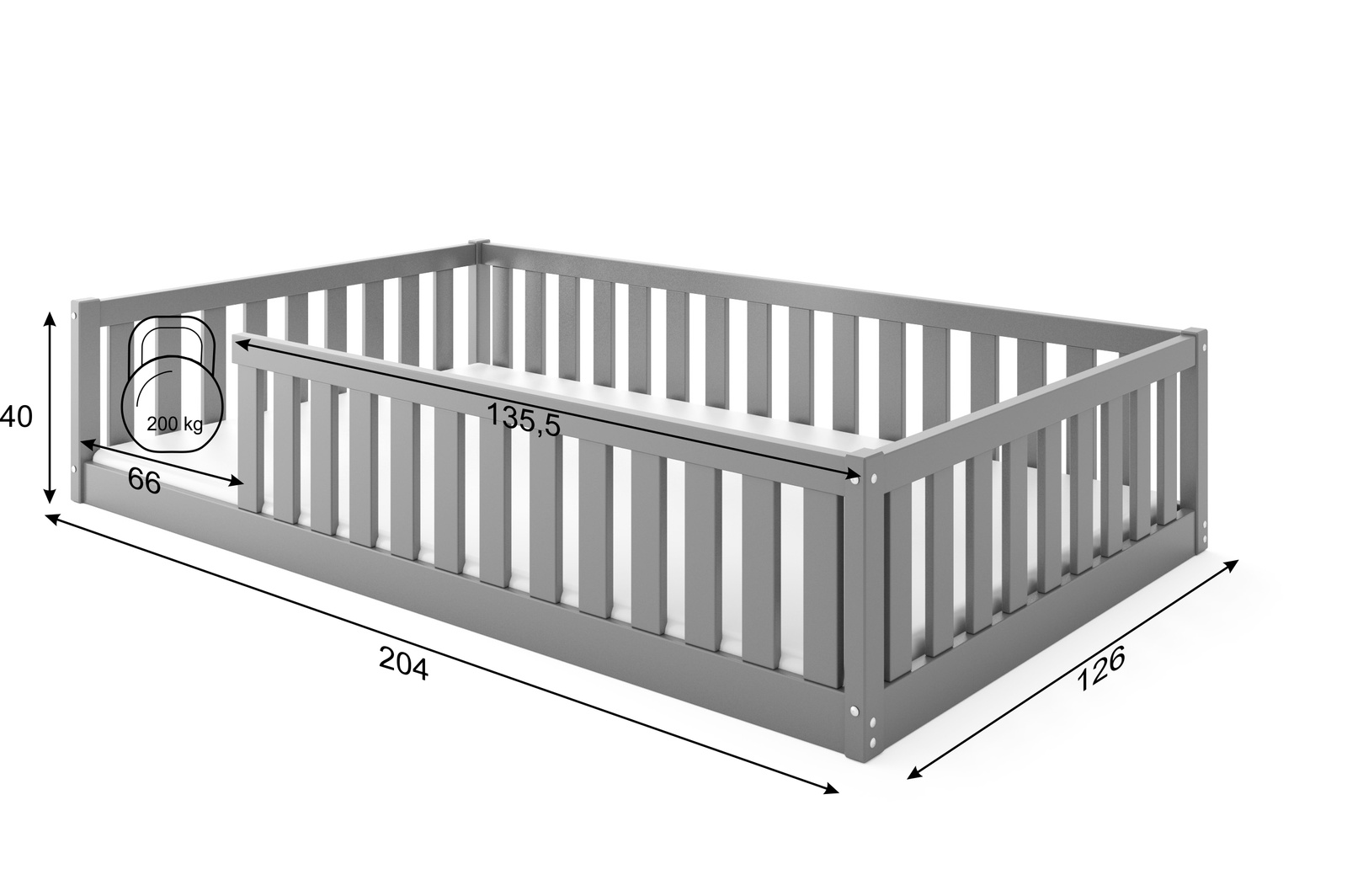 - Detská jednoposchodová posteľ s plochou na spanie 120x200 cm je ideálnou voľbou do detskej izby. Robustný grafitový rám sa dobre kombinuje s moderným dizajnom interiéru a ponúka funkčnosť a estetiku v jednom. Matrac nie je súčasťou balenia.