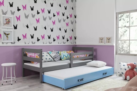 ERYK 90x190 detská posteľ s matracom a zásuvkou, sivomodrá