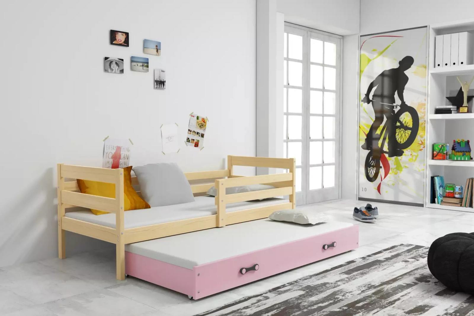 ERYK 90x190 posteľ s matracom a zásuvkou, borovicová/ružová