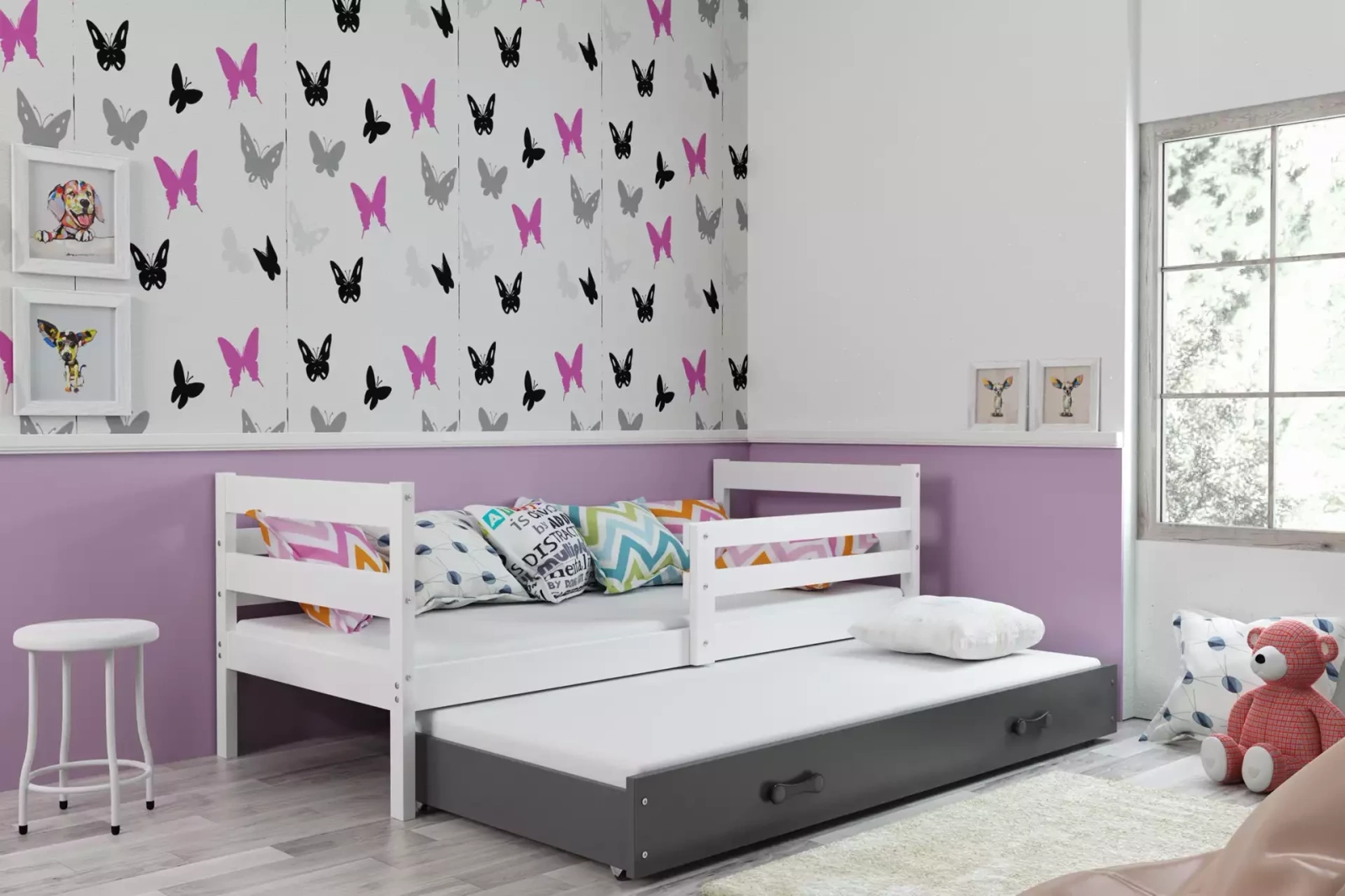 Neuveriteľné pohodlie a bezpečnosť sú základnými vlastnosťami postele Eryk, ktorá vám umožní maximálne využiť dostupný priestor. Pripravené zabezpečiť dobrý spánok pre jedno alebo dve deti.