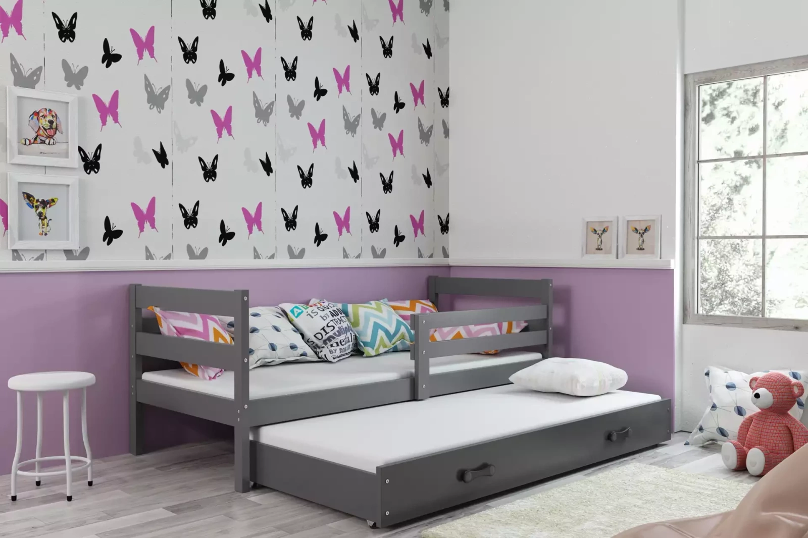 Neuveriteľné pohodlie a bezpečnosť sú základnými vlastnosťami postele Eryk, ktorá vám umožní maximálne využiť dostupný priestor. Pripravené zabezpečiť dobrý spánok pre jedno alebo dve deti.