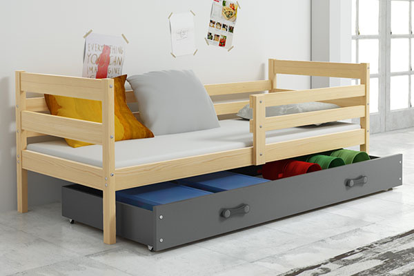 Jednolôžková posteľ pre mladých ERYK 80X190 s matracom a zásuvkou, borovica/grafit