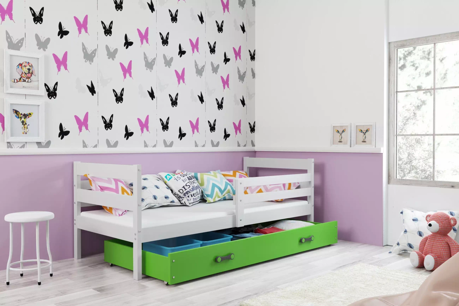 Jednolôžková posteľ pre mladých ERYK 90X200 so zásuvkou, biela/zelená
