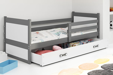 Jednolôžková posteľ pre mladých RICO 90X200 s matracom a zásuvkou, grafitová/biela