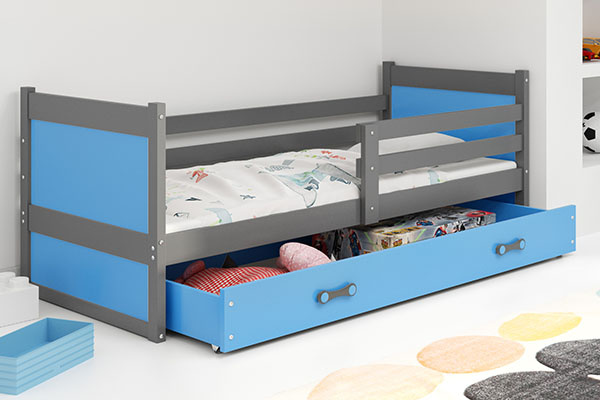 Jednolôžková posteľ pre mladých RICO 90X200 so zásuvkou, grafit/modrá