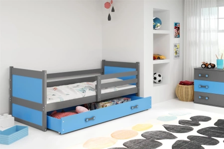 Jednolôžková posteľ Rico 90x190 s matracom a zásuvkou, sivomodrá