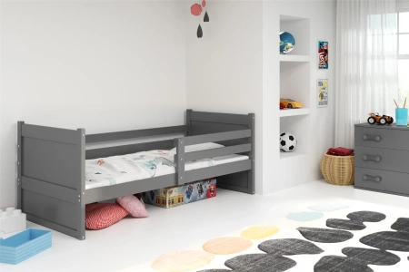 Detská posteľ RICO je vysoko funkčné riešenie pre chlapčenské aj dievčenské spálne. Vďaka svojmu minimalistickému dizajnu sa dokonale hodí k akémukoľvek interiéru. Vďaka univerzálnym farbám ho možno ľahko kombinovať s rôznymi aranžmánmi. Posteľ natretá grafitovou farbou je intenzívnym, ale neutrálnym riešením a jej konečné usporiadanie závisí od ostatných prvkov - farby stien a doplnkov. Farba pokrývajúca konštrukciu je antialergická a má všetky potrebné povolenia.
