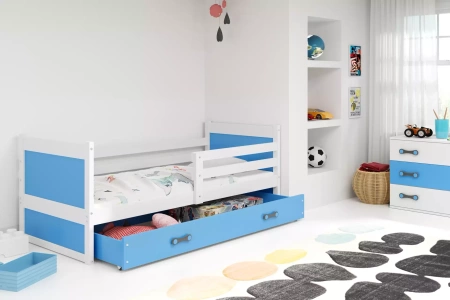Jednolôžková posteľ Rico 90x190 so zásuvkou, biela/modrá