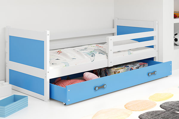 Jednolôžková posteľ RICO 90X200 s matracom a zásuvkou, biela/modrá