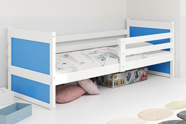 Jednolôžková posteľ RICO 90X200 s matracom, biela/modrá