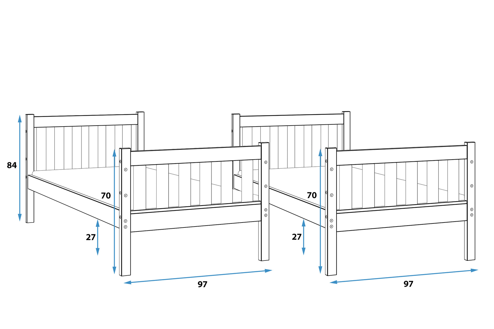 V závislosti od vašich potrieb môžete posteľ Kacper kedykoľvek zostaviť ako poschodovú posteľ alebo ju rozložiť na dve samostatné postele.
