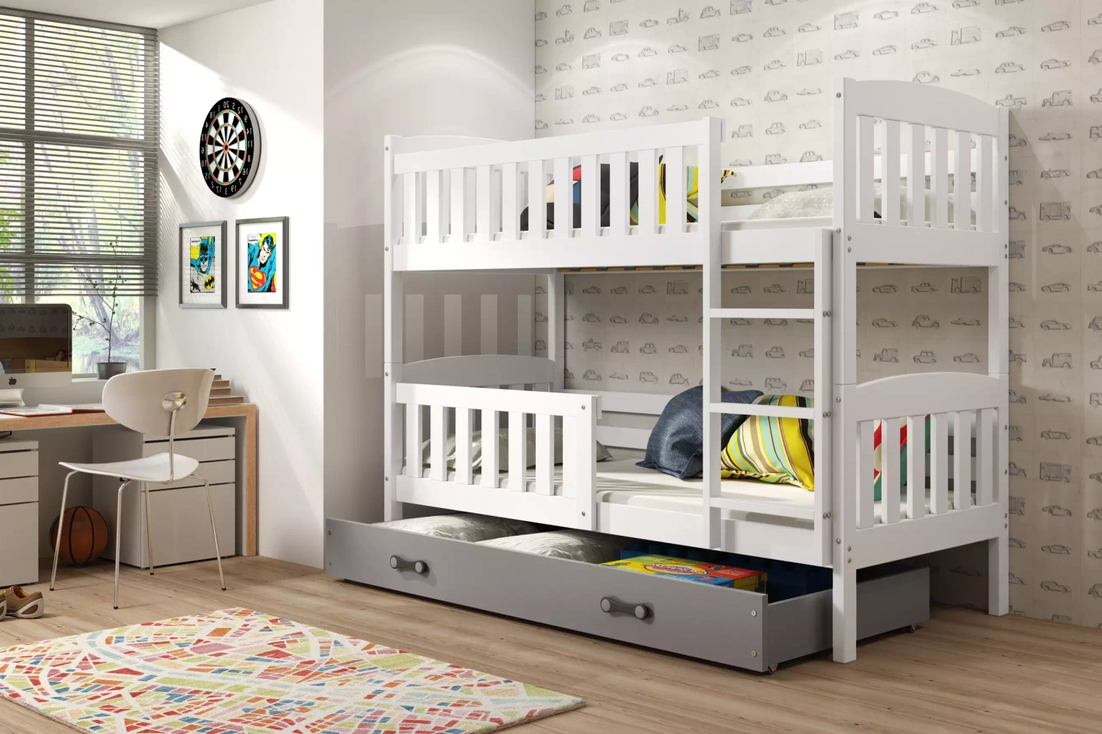 Juniorská poschodová posteľ KUBUŚ 90X200 so zásuvkou, biela/grafit