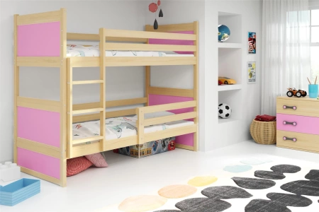 Juniorská poschodová posteľ RICO 90X190 s matracom, borovicová/ružová