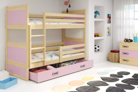 Juniorská poschodová posteľ RICO 90X190 so zásuvkou, borovicová/ružová