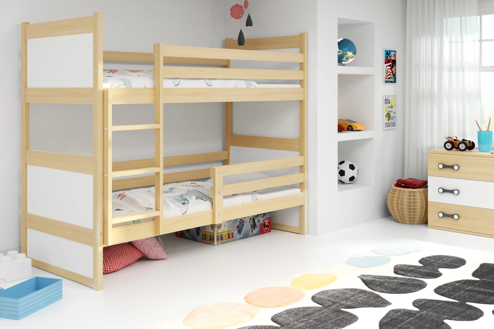 Juniorská poschodová posteľ RICO 90X200 s matracom, borovicová/biela