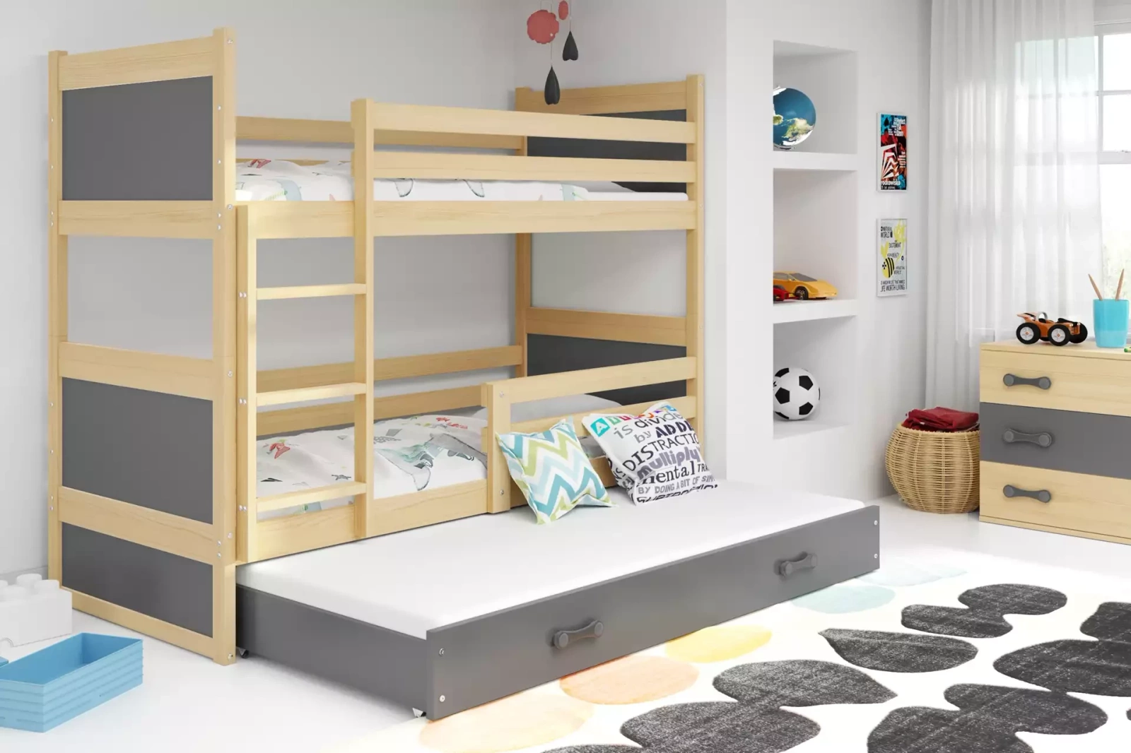 Juniorská trojmiestna posteľ RICO 90X190 so zásuvkou, borovica/grafit