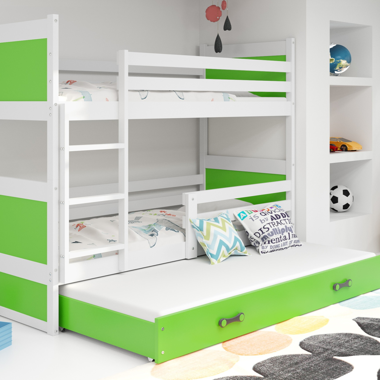 Juniorská trojmiestna posteľ RICO 90X200 s matracom a zásuvkou, biela/zelená