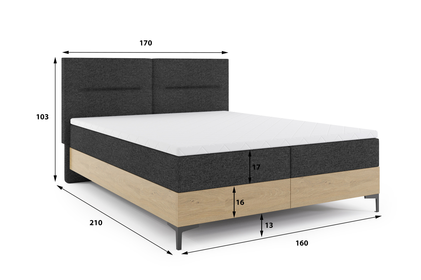 Kontinentálna posteľ 160x200 s kontajnerom a dubovými matracmi Imperial