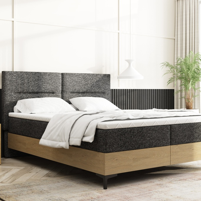 Kontinentálna posteľ 160x200 s úložným boxom, ktorú ponúka spoločnosť Interbeds, je ideálnym riešením pre tých, ktorí si cenia pohodlie aj funkčnosť svojej spálne. Pohodlne si oddýchnete na ploche na spanie s rozmermi 160x200 cm. Táto posteľ v sebe spája moderný a klasický štýl vďaka použitiu prírodného dubového dreva a čalúneného čela, ktoré dodajú eleganciu a útulnosť každému interiéru.