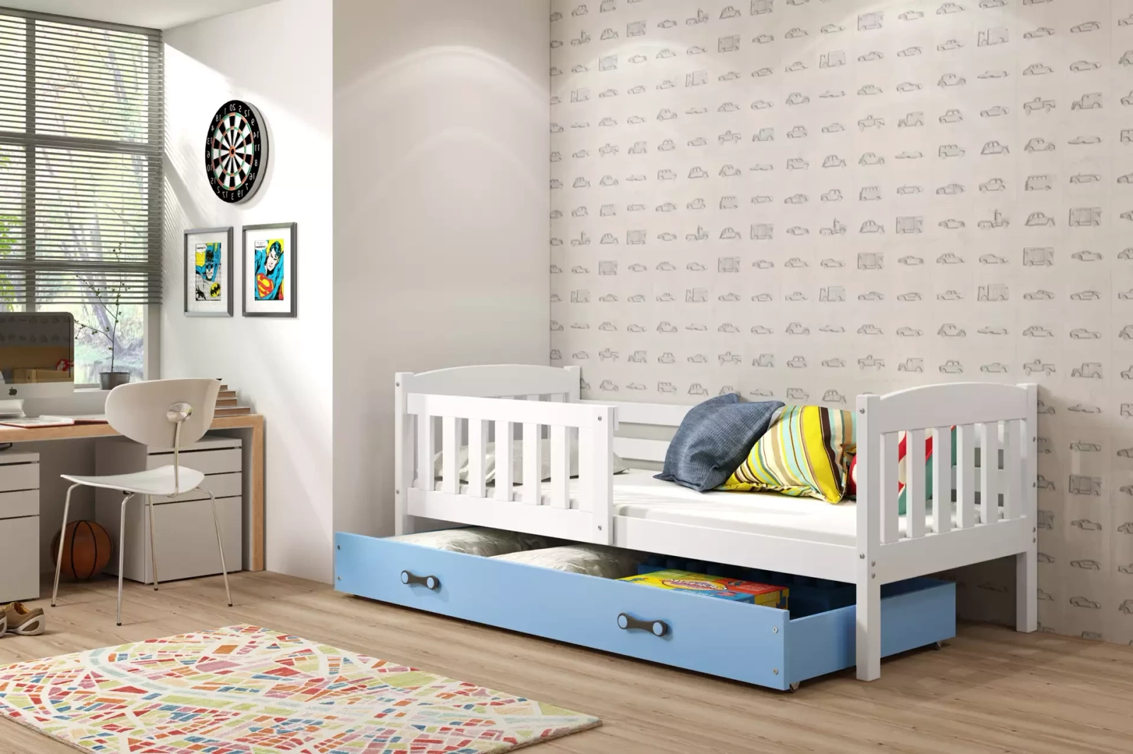 KUBUŚ 90X190 jednolôžková posteľ pre mladých so zásuvkou, biela/modrá
