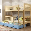 KUBUŚ 90X190 trojlôžková posteľ pre mladých s matracom a zásuvkou, borovicová/modrá