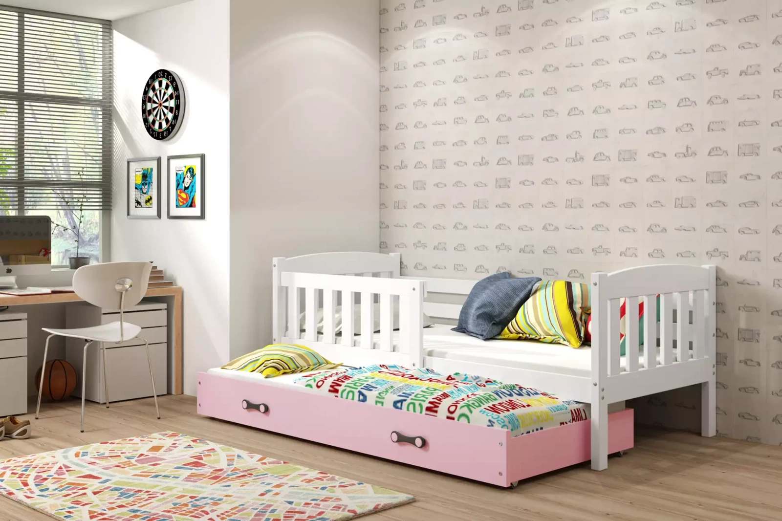 KUBUŚ 90X190 výsuvná posteľ pre mladých so zásuvkou, biela/ružová