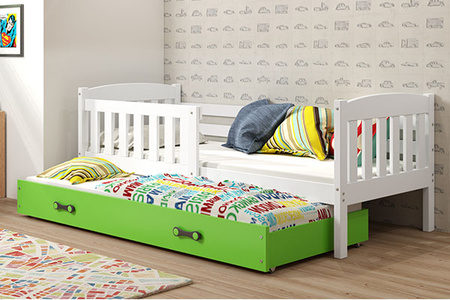 KUBUŚ 90X200 výsuvná posteľ pre mladých s matracom a zásuvkou, biela/zelená