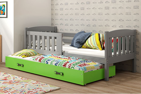 KUBUŚ 90X200 výsuvná posteľ pre mladých s matracom a zásuvkou, grafitová/zelená