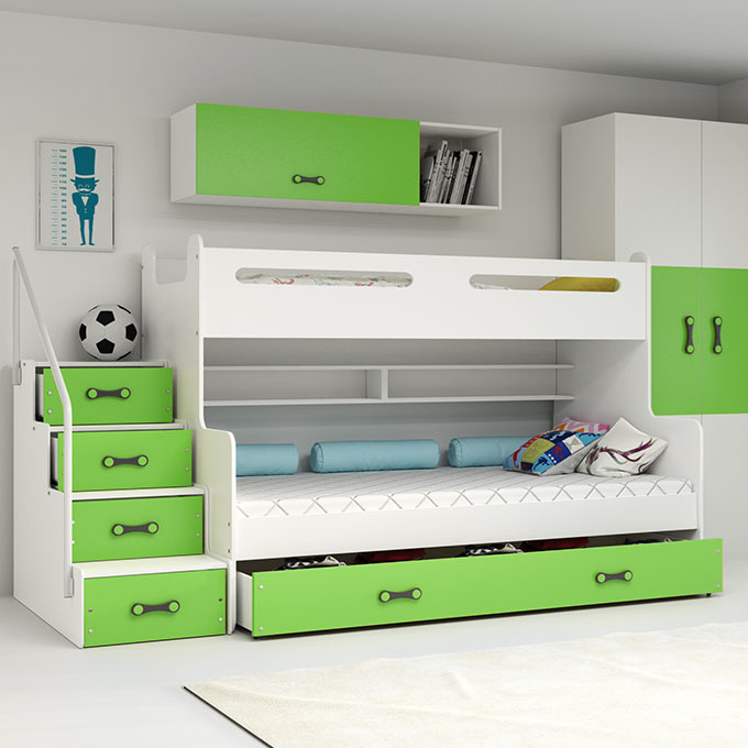 Mládežnícka poschodová posteľ MAX 3 120X200 s matracom a zásuvkou, zelená