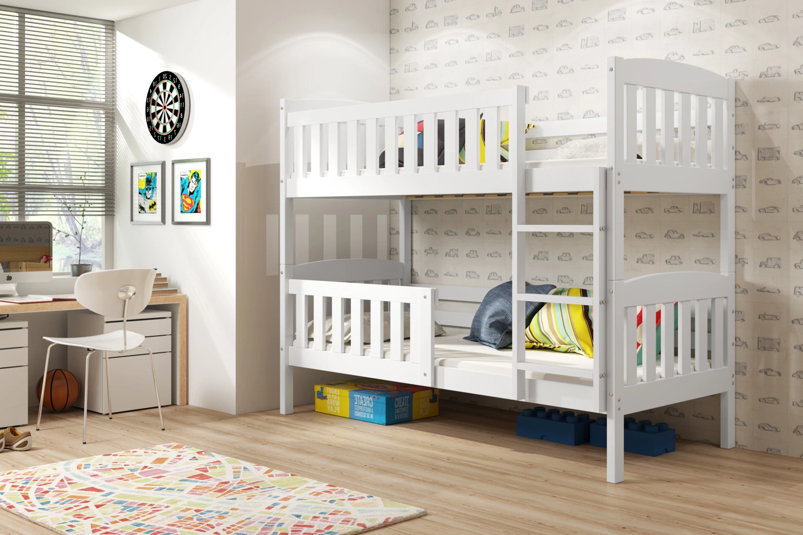 Poschodová posteľ KUBUŚ 90X190, biela