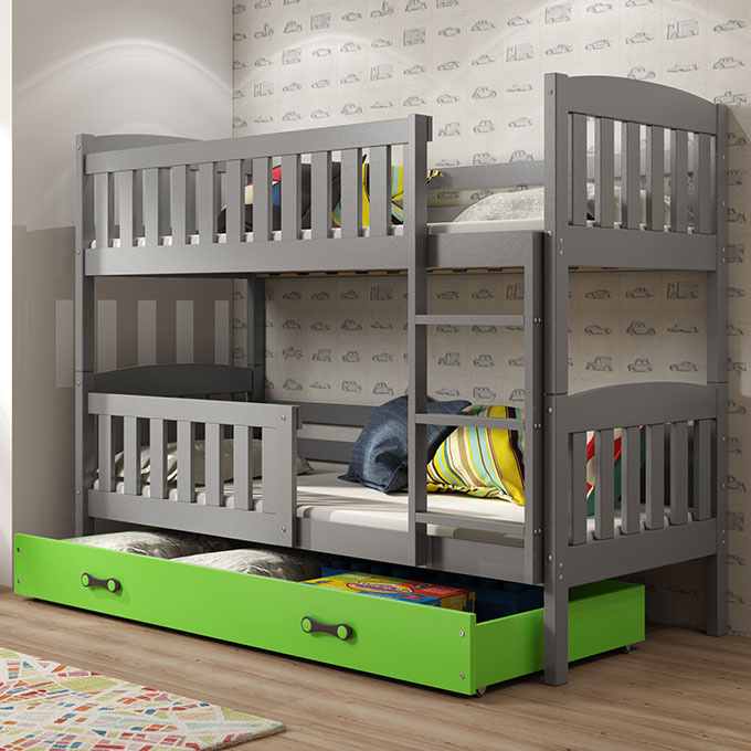 Poschodová posteľ KUBUŚ 90X200 so zásuvkou, grafitová/zelená