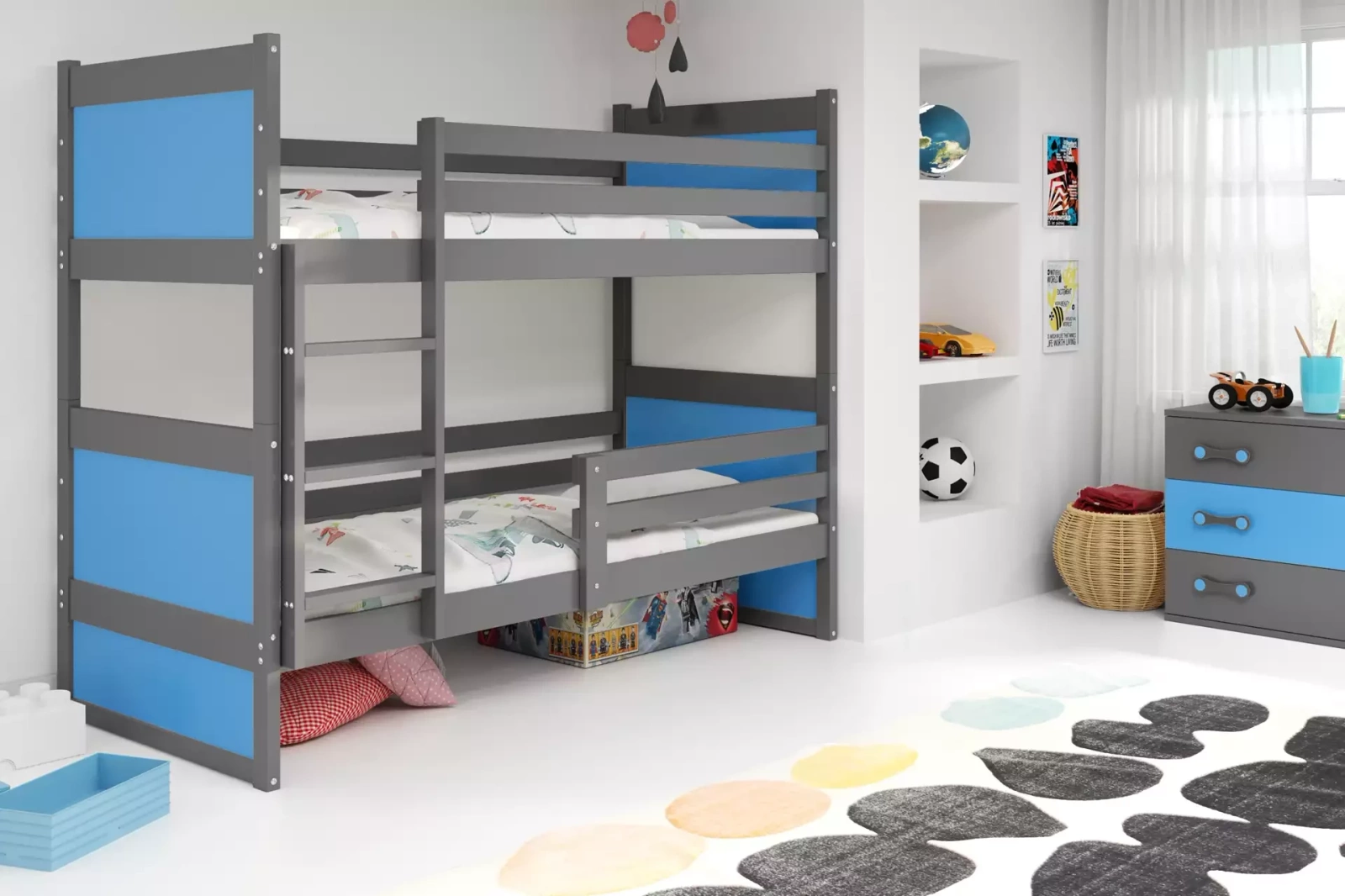 Poschodová posteľ pre mladých RICO 90X190, grafit/modrá