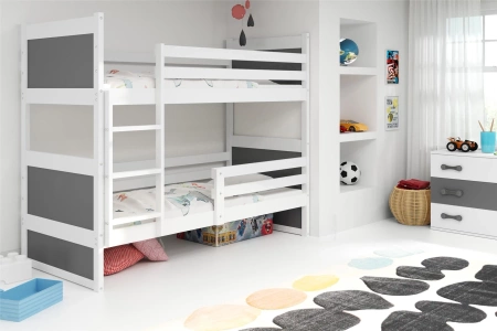 Poschodová posteľ pre mladých RICO 90X190 s matracom, biela/grafitová