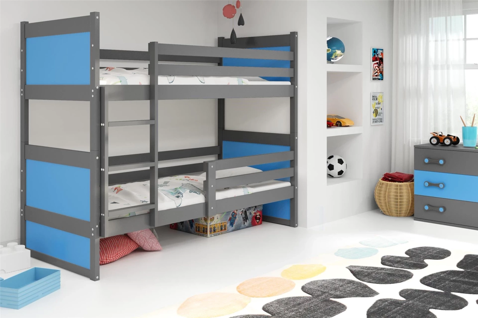 Poschodová posteľ pre mladých RICO 90X190 s matracom, grafit/modrá
