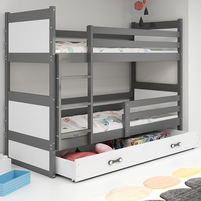 Poschodová posteľ pre mladých RICO 90X200 s matracom a zásuvkou, grafitová/biela