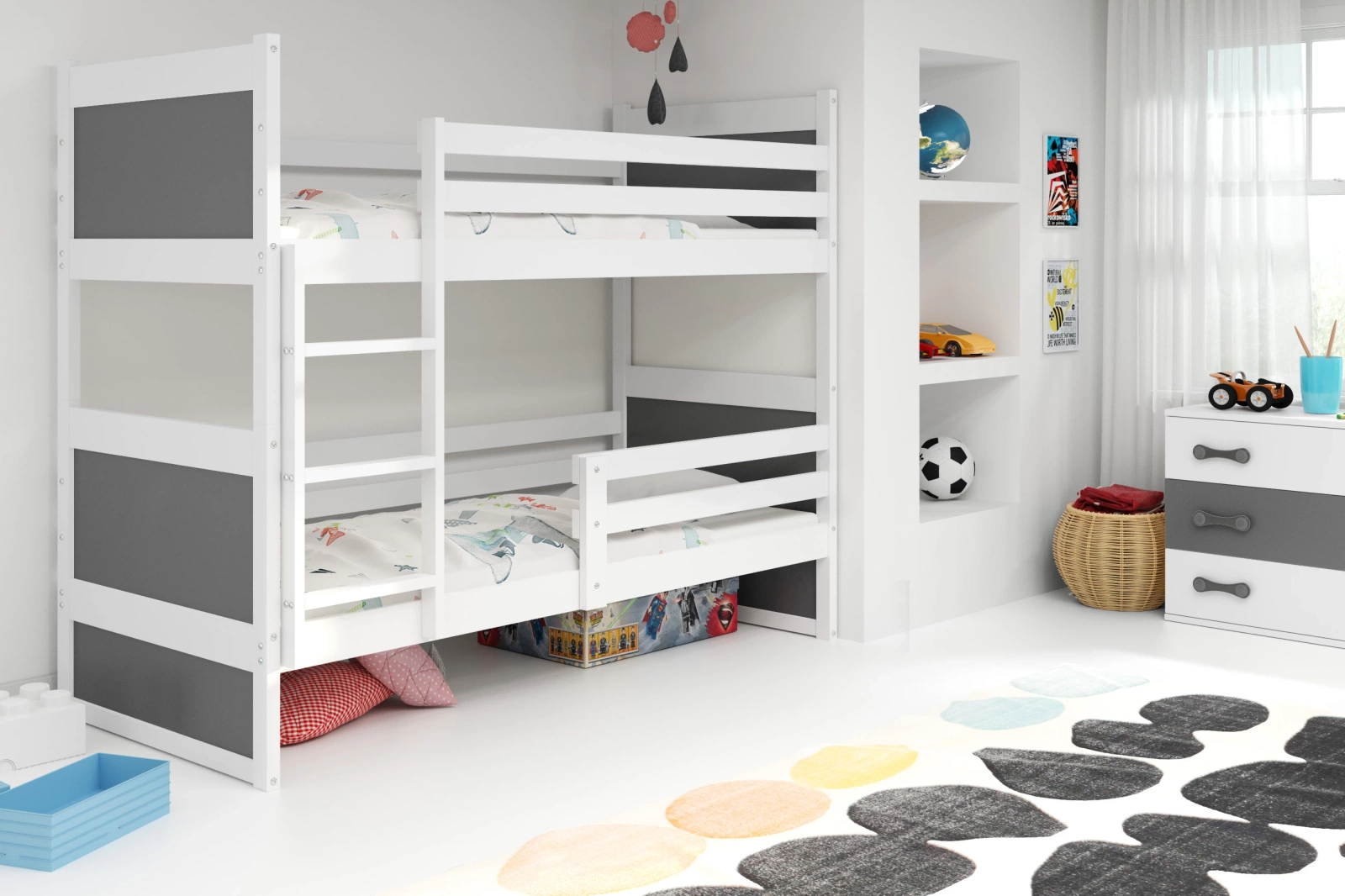 Poschodová posteľ pre mladých RICO 90X200 s matracom, biela/grafitová