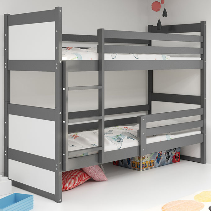 Poschodová posteľ pre mladých RICO 90X200 s matracom, grafitová/biela