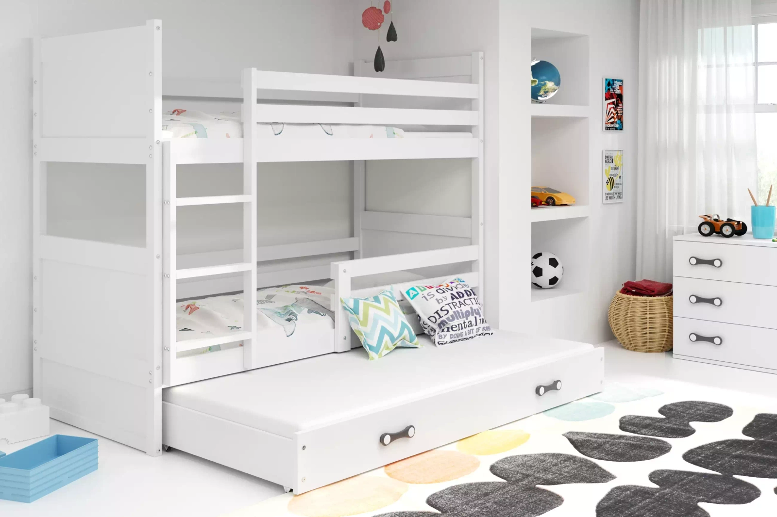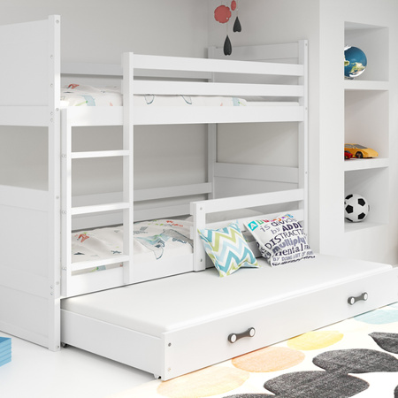 Klasická poschodová posteľ pre 3 osoby je riešenie, ktoré sa hodí do chlapčenských aj dievčenských izieb. Vaše deti obývajú jednu miestnosť? V takom prípade je vynikajúcou voľbou príbehový variant v bielej farbe. Skvelý základ na zdobenie podľa detského vkusu.