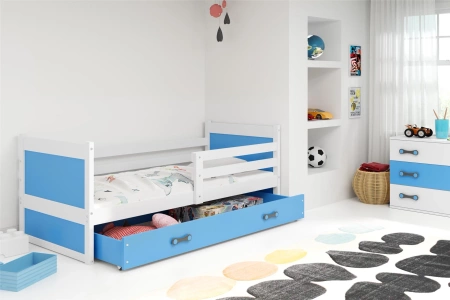 Rico jednolôžková posteľ pre dospievajúcich 90x190 s matracom a zásuvkou, biela/modrá